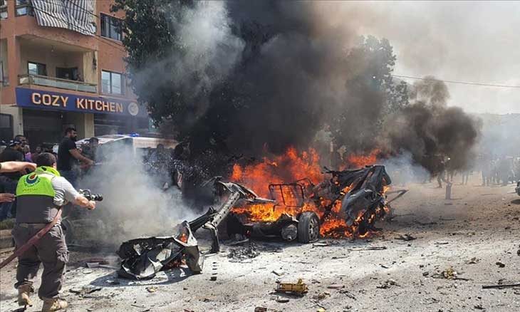 وواصل الطيران الإسرائيلي اعتداءاته الجوية، فاستهدفت مسيّرة سيارة في منطقة تول قرب النبطية، أدت إلى استشهاد عنصر من «حزب الله» هو حسين العبد حمدان من ميس الجبل، وهو كان أصيب بانفجار أجهزة البيجر العام الماضي اضافة إلى إصابة مواطنين اثنين بجروح. وأغارت مسيرة مساءً على سيارة على طريق زوطر الغربية ـ قعقعية الجسر قرب النبطية وهناك شهيد.