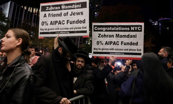 بالتزامن؛ نُشرت صور ليهود في نيويورك يحتفلون بفوز زهران ممداني ورفعوا لافتات تقول “تهانينا يا نيويورك”، و”زهران ممداني صديق اليهود”.