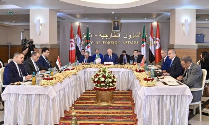 وقد شارك في الاجتماع وزير الدولة، وزير الشؤون الخارجية والجالية الوطنية بالخارج والشؤون الإفريقية، الجزائري أحمد عطاف، إلى جانب وزير الخارجية والهجرة وشؤون المصريين بالخارج لجمهورية مصر العربية، بدر عبد العاطي، ووزير الشؤون الخارجية والهجرة والتونسيين بالخارج للجمهورية التونسية، محمد علي النفطي.