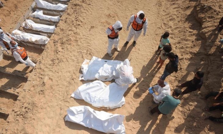 بدأت فرق الدفاع المدني في انتشال أكثر من 50 جثة من الفناء الخارجي لعيادة الشيخ رضوان غرب مدينة غزة، في عملية دقيقة وصعبة باستخدام أدوات يدوية فقط، بعد دفن الضحايا على نحو مؤقت خلال الهجوم الإسرائيلي الأخير، وفق ما أفاد به مراسل موقع Drop Site عبد القادر صباح.