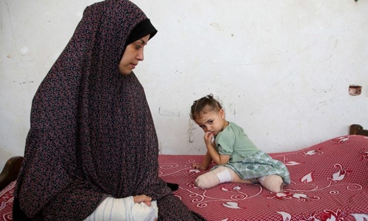 ويرقد ياسين معروف في خيمة بوسط قطاع غزة، وتم بتر قدمه اليسرى، بينما يتم بالكاد تثبيت ساقه اليمنى بدعامات معدنية. وأصيب الشاب (23 عامًا) وشقيقه جراء قصف إسرائيلي، في شهر مايو/أيار، أثناء عودتهما من زيارة منزلهما في شمال غزة الذي اضطرت أسرتهما إلى الفرار منه، وقُتل شقيقه. وكان معروف يرقد على الأرض ينزف، فيما هاجم كلب ضال ساقه اليسرى الممزقة. ويقول أطباء إنه سوف تكون هناك حاجة لبتر ساقه اليمنى أيضًا، ما لم يتمكن من السفر إلى الخارج للخضوع لعمليات جراحية ربما تنقذها.