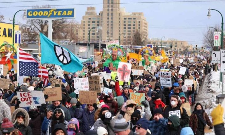 ودعا ائتلاف لمنظمات حقوق المهاجرين في مينيابوليس إلى تنظيم مظاهرات في منتزه باودرهورن، وهي مساحة خضراء كبيرة تبعد نصف ميل مربعا من الحي السكني الذي شهد إطلاق النار على رينيه جود 37/ عاما/ يوم الأربعاء الماضي.